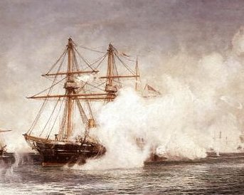 had entered the river towing boats full of British Marines. Two