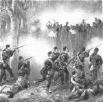 parties of Marines went ashore but were fired upon by the Malays. The